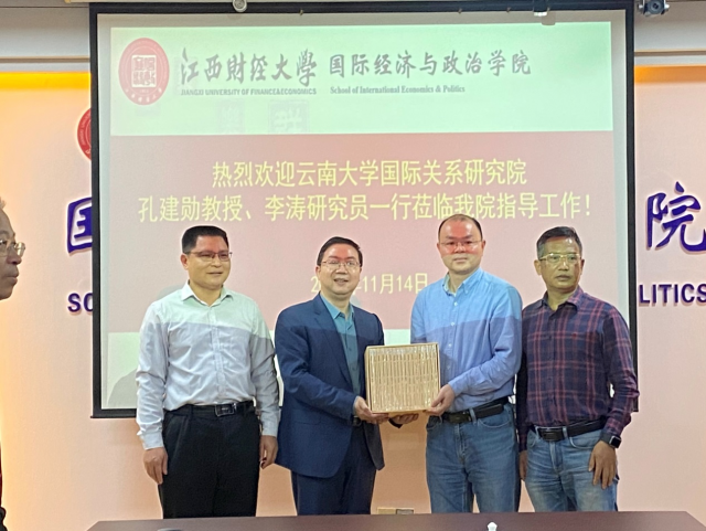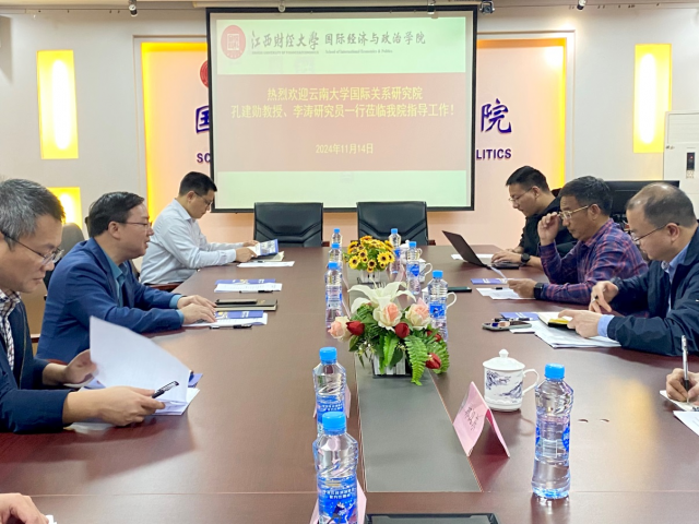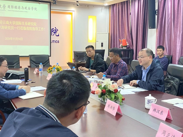 11月14日上午,云南大学国际关系研究院孔建勋教授、李涛研究员一行4人到访欧美成人电影 进行调研交流,欧美成人电影 吴朝阳院长、许统生教授、刘兴华教授、余昌龙副院长以及周正清博士参与座谈。