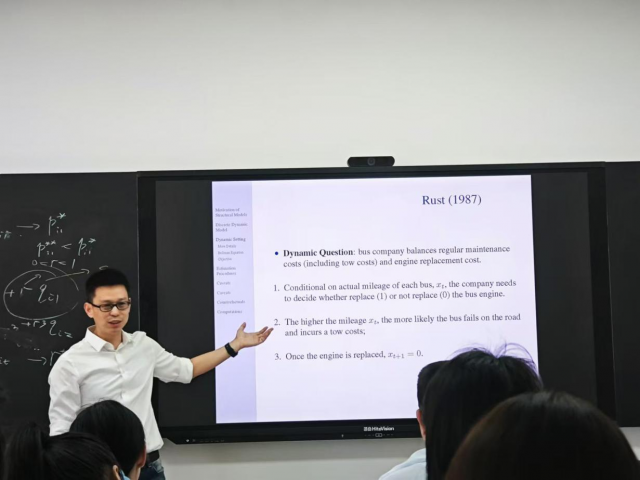 在课上,谭老师不仅采用了全英的ppt进行授课,介绍并逐步推演模型,还现场运用MATLAB软件为我们展示Nelder-Mead模型的具体操作。不仅如此,他还与我们深入探讨了做计量模型的实际出发点的问题,即究竟是注重了解历史发生事件的逻辑还是注重以估计的结果预测未来事件。