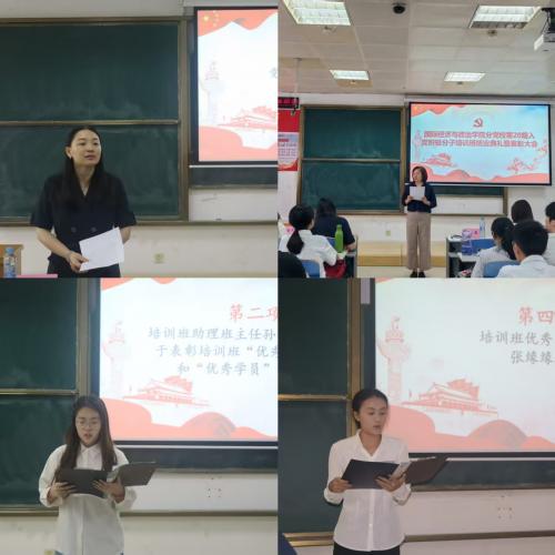 会议伊始,全体参会人员起立奏唱国歌,随后培训班助理班主任孙弋雯宣读了《关于表彰培训班“优秀学习小组”和“优秀学员”的决定》。培训班优秀学员代表张缘缘进行了发言,她讲述了本次培训的心得与感悟,她表示将以此次培训为契机,不断提升自己的党性修养和综合素质,为早日加入中国共产党而不懈努力,并激励和鼓舞大家要严格要求自己,充分发挥先锋模范作用。